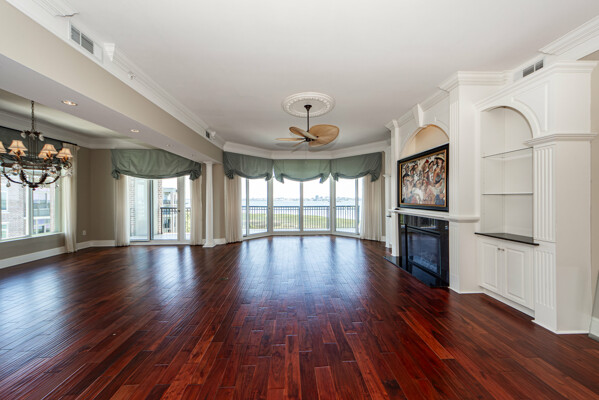 Welcome to the Renaissance on the Harbor as you enter this complex, you feel like you are entering a luxury resort and for all intent and purposes, you are this is probably the most upscale condo complex on the harbor in all of Charleston and 185 N Plaza just reenforces that feeling here we have a 3 bedroom, 3 1/2 bathroom, 4116 asqft luxury condo that is directly overlooking Charleston Harbor, the peninsula of Charleston, Isle of Palms, Sullivans Island and the Ravenel Bridge upon entering this condo from your private elevator, with its hand painted door that opens directly into the condo through a small vestibule you enter into a large great room, with a gas log fireplace and a bank of floor to ceiling windows and sliding glass doors overlooking a big and inviting balcony thatwill afford one fantastic views of the city and harbor but the best will be the 4th of July fireworks show off of the Yorktown at Patriots Point in the great room, you find a hidden TV over the fireplace behind a picture with an automatic screen that disappears into the wall there is a full wet bar with ice maker, just waiting for you adjacent to the great room is a spacious dining area that also offers wonderful views while enjoying your meal then there is a huge kitchen with a large breakfast area and a comfortable sitting area with a second gas log fireplace - in the KITCHEN - there is center island, high end cabinets and appliances that just begs for an owner that loves to cook down a hallway from the great room and on your left, there is a handsome office also overlooking