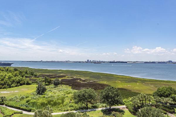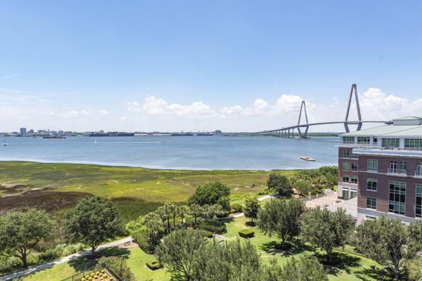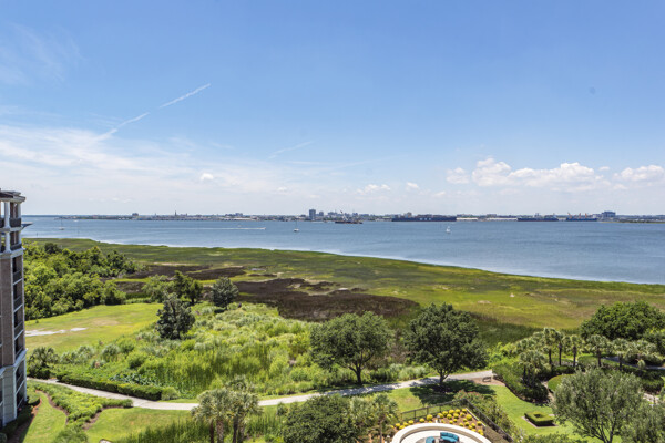 the harbor with large, mahogany built-in cabinets and storage continuing down the hall with lighting that is set up for displaying your favorite artwork we come to 2 secondary bedrooms that are generous in size with large closets and a full bath big windows in each offer lots of light next is a very spacious master suite featuring a large bedroom that can accommodate the largest bed one can find and still have space for a sitting area there are 2 large closets, one a huge walk-in for all of your duds then there is a master bath with dual vanities, large tub and shower and a window for natural light and a relaxing view while you get ready for the day or evening there is also a private balcony with knock out views of the harbor and city a half bath rounds out the condo the Renaissance offers so many great amenities like a wonderful pool area overlooking the harbor concierge service for the owners guest suites that are available for rent to handle any overflow of guests a library for some quiet reflection and fully equipped workout room there is climate controlled storage space available as well as 2 dedicated parking spaces per unit the Renaissance in centrally located in Mt Pleasant and is close to all of the restaurants, shopping, social activities and beaches that this area can offer just a quick turn and you are on the Ravenel Bridge and on your way to the city with all of its attractions there is even water taxi service for a great trip to town so again, welcome to 185 N Plaza Court THERE IS THE RIGHT OF FIRST REFUSAL IN PLACE